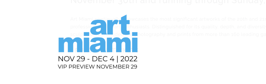 Art Miami continually showcases the most significant artworks of the 20th and 21st centuries and is a “can’t miss” event for collectors, curators, museum professionals and art enthusiasts. Distinguished for its quality, depth, and diversity, Art Miami 2022 will feature investment quality paintings, drawings, design, sculpture, NFTs, video art, photography and prints from more than 160 leading galleries across 17 countries.