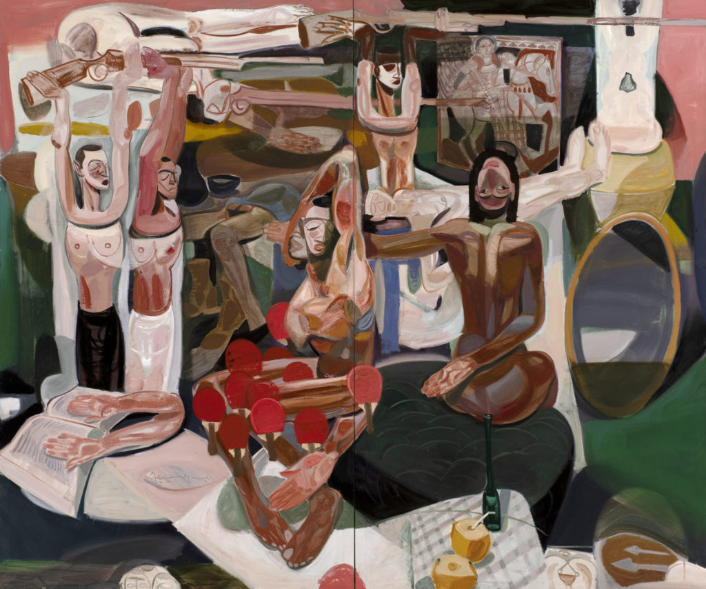 Saatchi Yates opens a temporary gallery space in Miami, with a solo exhibition of new work by Ethiopian Contemporary artist Tesfaye Urgessa to coincide with his presentation at the Rubell Museum, Miami opening December 2022. Saatchi Yates Miami is situated in the Design District, next to the Institute of Contemporary Art and the de la Cruz Collection. Tesfaye Urgessa was born in 1983 and lives and works in Germany, having emigrated from Addis Ababa, Ethiopia. Urgessa studied under master Tadesse Mesfin in Ethiopia, and later graduated from the Staatlichen Akademie in Stuttgart. Through these experiences, Ugressa was able to connect Ethiopian iconography and a deep fascination with traditional figurative painting to create a unique and striking language. Urgessa’s subject matter recalls intertwined representations of race and the politics of identity.
