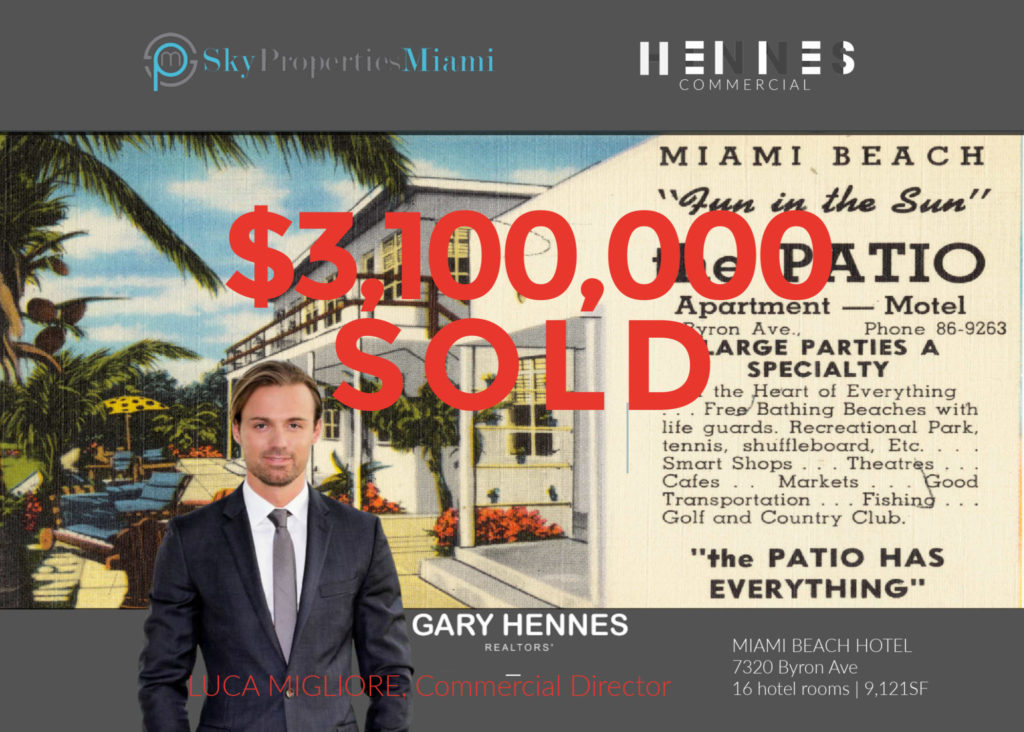 MIAMI BEACH HOTEL SELLS: Luca Migliore sells North Beach suite hotel at $3,100,000